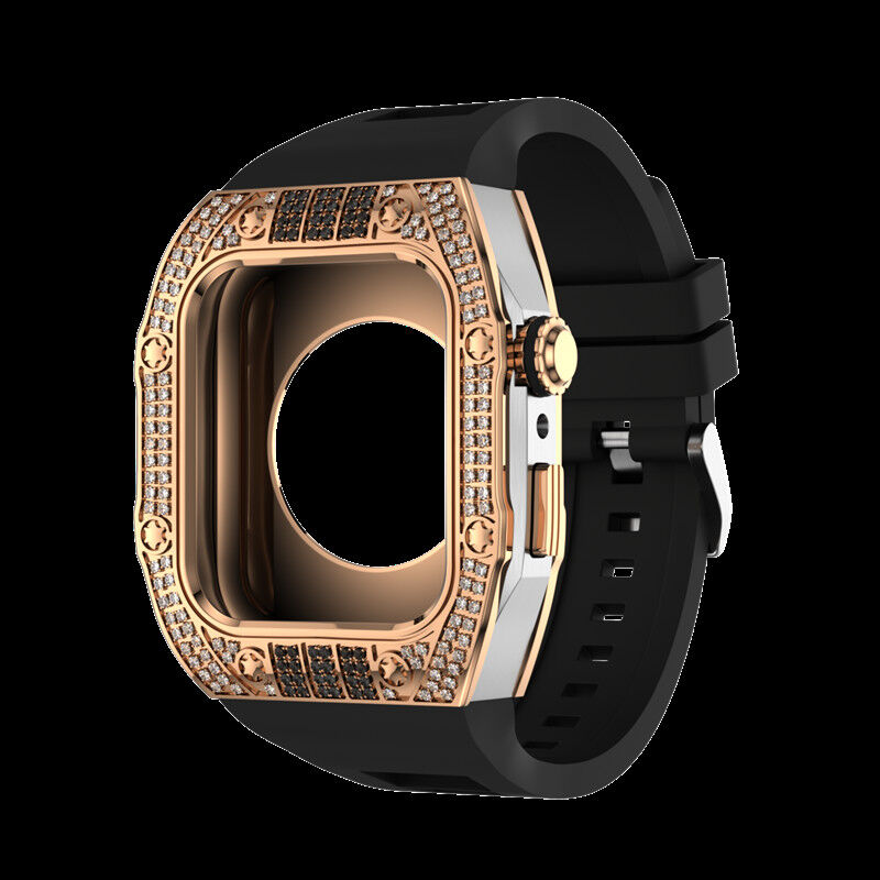 This luxury carbon fiber watch case and fluorine rubber wristband is compatible with Apple Watch Series 8, 7, 6, 5, 4 and SE (44/45mm), designed for wrists measuring 6.5-9 inches (165mm-230mm).